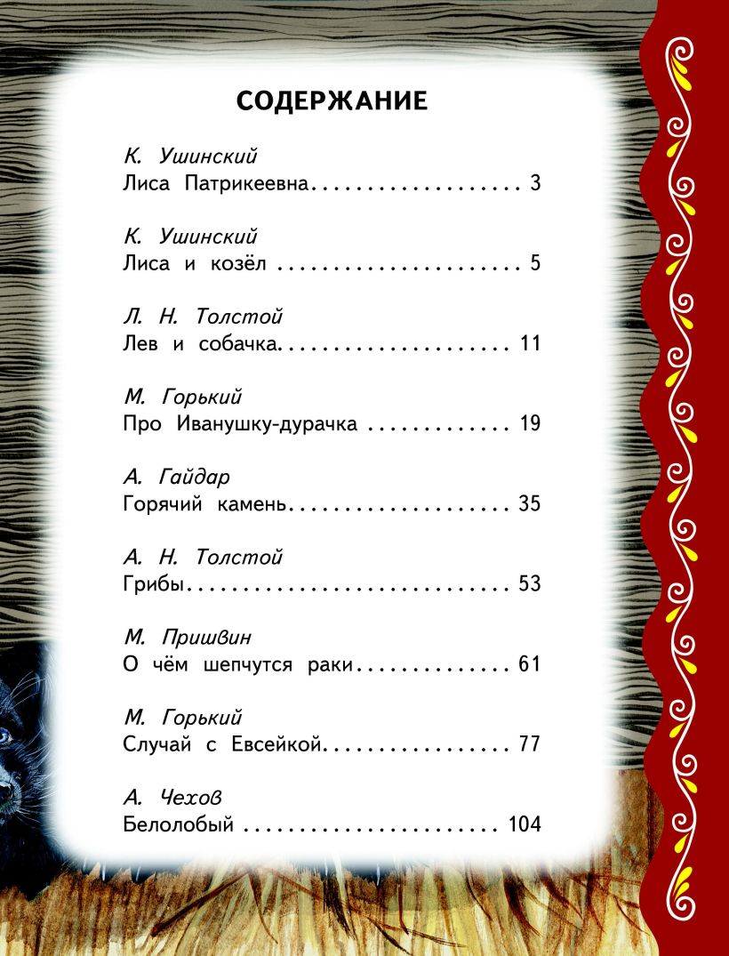 В сборник «Самые лучшие сказки русских писателей» вошло 9 произведений: «Лиса Патрикеевна» К. Ушинского, «Лев и собачка» Л. Толстого, «Горячий камень» А. Гайдара и другие.