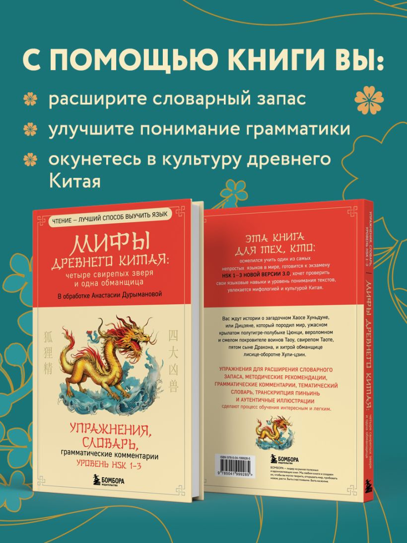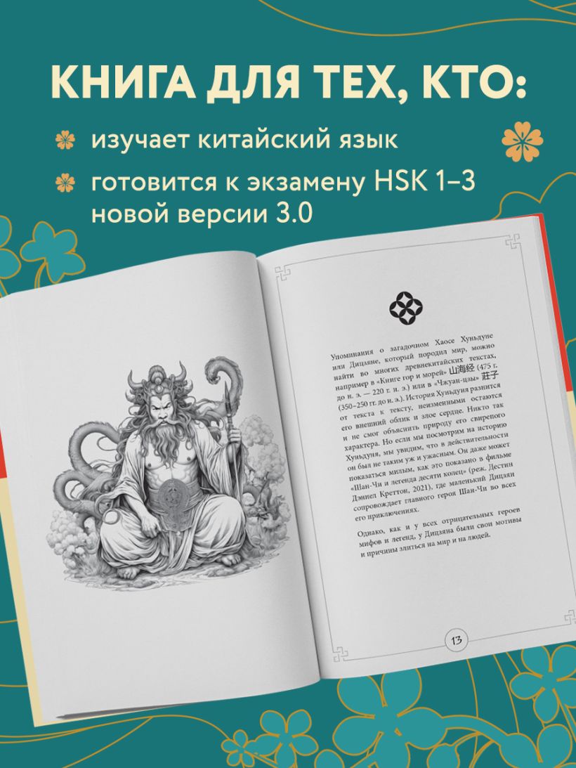 Читать на китайском языке могут только профессионалы? Конечно, нет. В этой книге вас ждут адаптированные рассказы о загадочном Хаосе Хуньдуне или Дицзяне, который породил мир, ужасном крылатом полутигре-полубыке Цюнци, вероломном и смелом покровителе воинов Таоу, свирепом Таоте, пятом сыне Дракона и хитрой обманщице лисице-оборотне Хули-цзин. Автор-составитель А. Д. Дурыманова, преподаватель РГГУ и НИУ ВШЭ, подготовила методические рекомендации, которые помогут сделать процесс чтения эффективным и доступным. Также каждая история сопровождается словарём с транскрипцией пиньинь, упражнениями, грамматическими комментариями и аутентичными иллюстрациями. А благодаря специализированной лексике вы сможете подготовиться к экзамену HSK 1-3 новой версии 3.0.