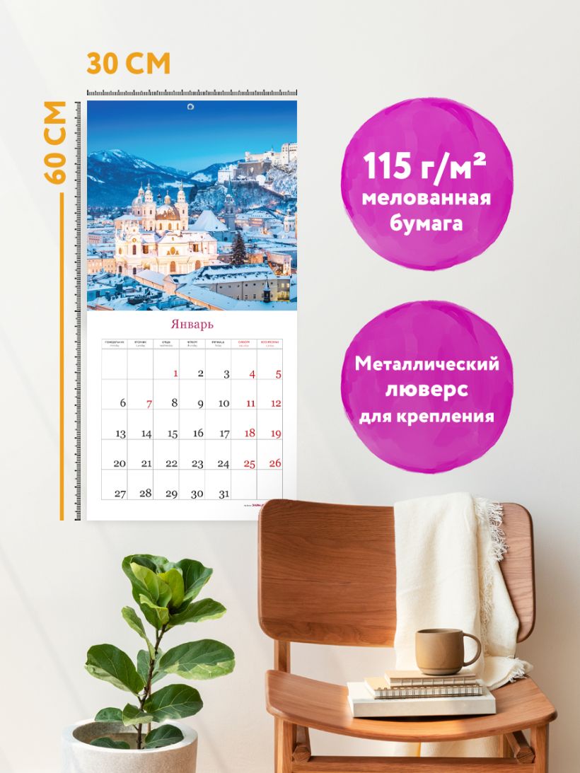- Тип календаря — настенный перекидной.