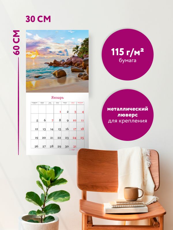 Наши настенные календари отличаются высоким качеством исполнения! Тщательно подобранные иллюстрации, напечатанные на глянцевой бумаге высочайшего качества, станут настоящим украшением дома, а в календарной сетке найдется место для ваших планов: большие клетки позволят делать записи и организовать свой год! В календаре также отмечены все государственные праздники.