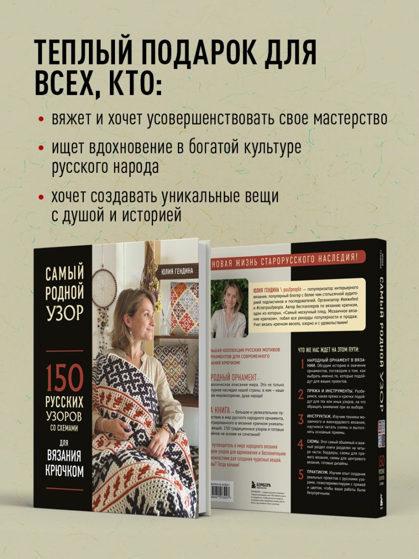 Уникальная книга от автора бестселлера «Самый нескучный плед» Юлии Гендиной! Новая жизнь старорусского культурного наследия! ВПЕРВЫЕ — большая коллекция русских мотивов и орнаментов для современного вязания крючком.