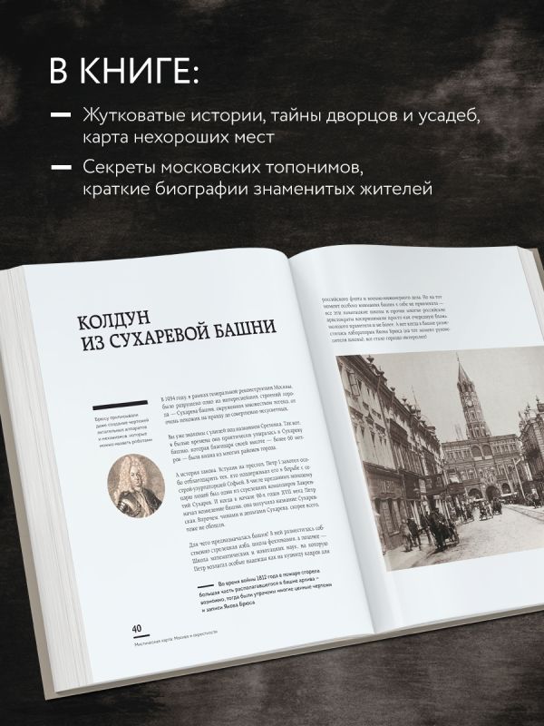Перед вами подарочное издание про таинственную Москву. Этот город считается одним из самых загадочных городов мира. Москва хранит множество легенд и преданий, секретов и тайн. Из этой книги вы узнаете не только о «нехороших» домах, о геопатогенных зонах, катакомбах и призраках города, но и обо всех тайнах и волшебных местах, где исполняются самые сокровенные желания.