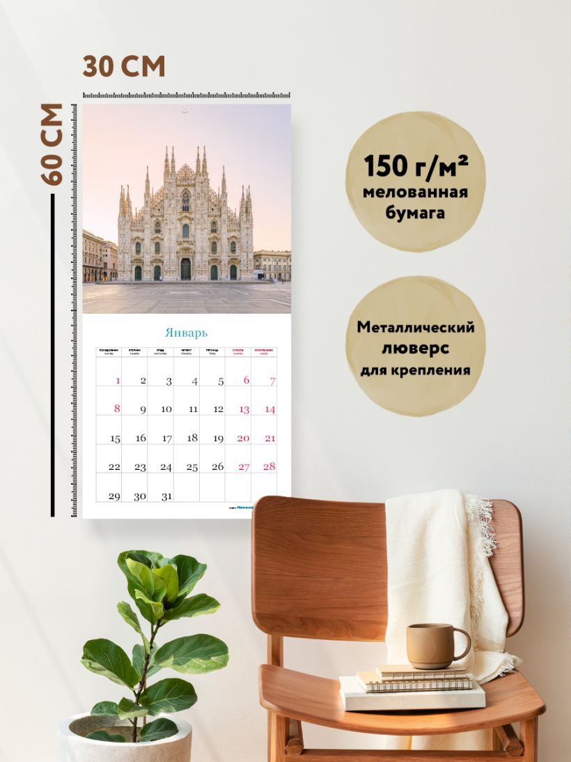 Благодаря большому формату и высокому качеству изображений этот календарь может стать отличным дополнением интерьера. В нем также отмечены выходные дни, а просторная сетка позволяет удобно планировать время и записывать важные события.