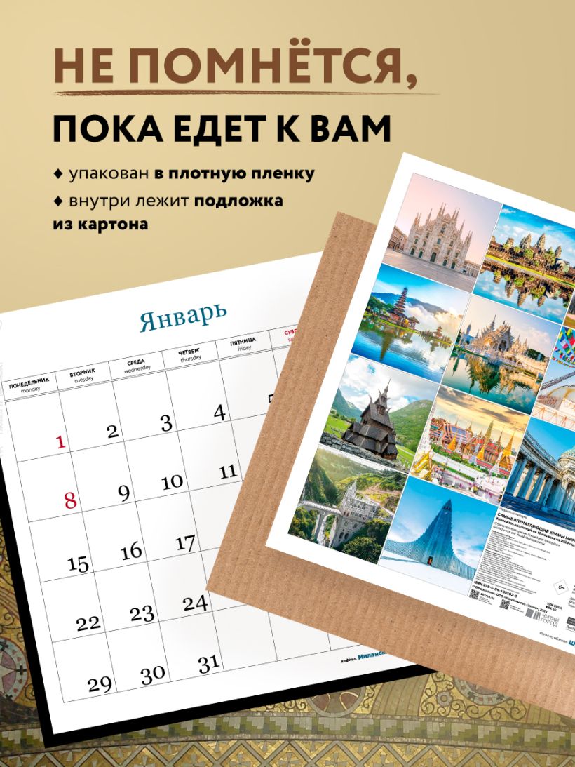 В календаре подобраны красочные фотографии самых красивых храмов на нашей планете: вы сможете насладиться и открыть для себя новое место с каждым месяцем.