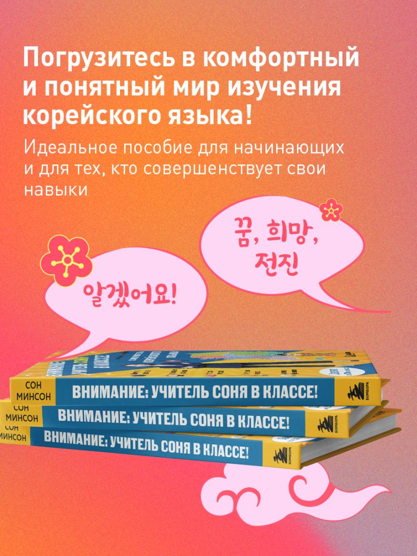 Внимание: учитель в классе! Но это не строгий педагог, которого боятся школьники. Это Сон Минсон — носитель языка, синхронный переводчик и известный блогер. Ее авторская методика совмещает дружеское общение, самые эффективные упражнения, актуальную лексику, доступную грамматику и аутентичную фразеологию. Пособие такого уровня в России издается ВПЕРВЫЕ!