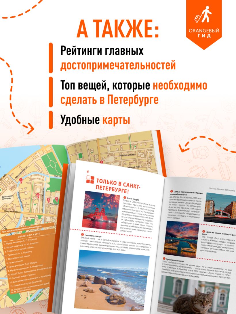 Увлекательная история, множество роскошных дворцово-парковых комплексов, разводные мосты, известные на весь мир музеи с богатой коллекцией — все это Санкт-Петербург, город Петра I, который был построен на воде! Отправляйтесь в незабываемое путешествие в Северную Венецию вместе с нашим «Оранжевым гидом»!