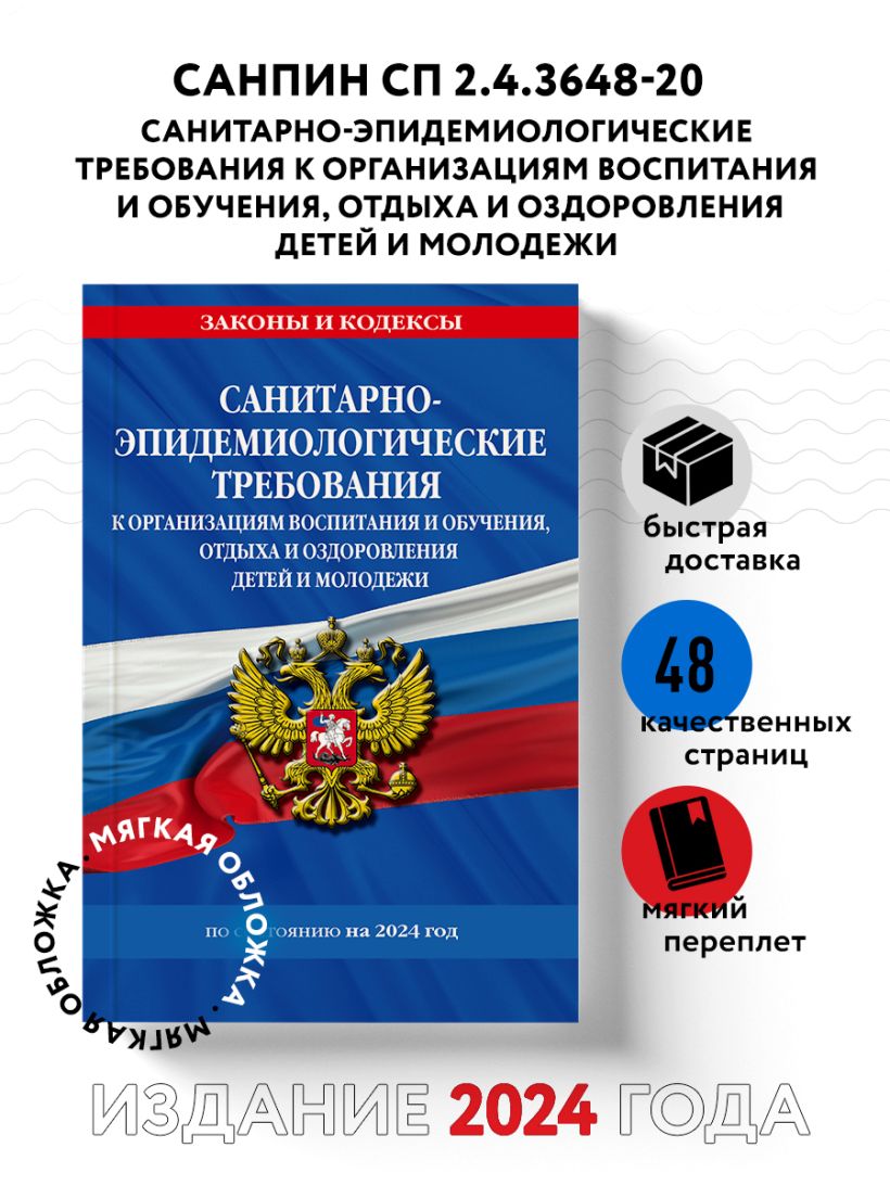 СанПин СП 2.4.3648-20 "Санитарно-эпидемиологические требования к организациям воспитания и обучения, отдыха и оздоровления детей и молодежи" с изм. на 2024 г.