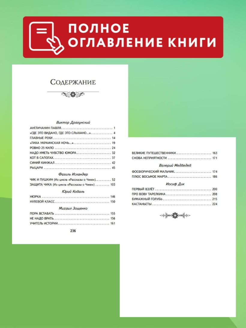 В сборник вошло более 20 нескучных и озорных рассказов о школьных буднях, написанных известными советскими писателями: Виктором Драгунским, Фазилем Искандером, Юрием Ковалем, Михаилом Зощенко, Валерием Медведевым и Иосифом Диком.