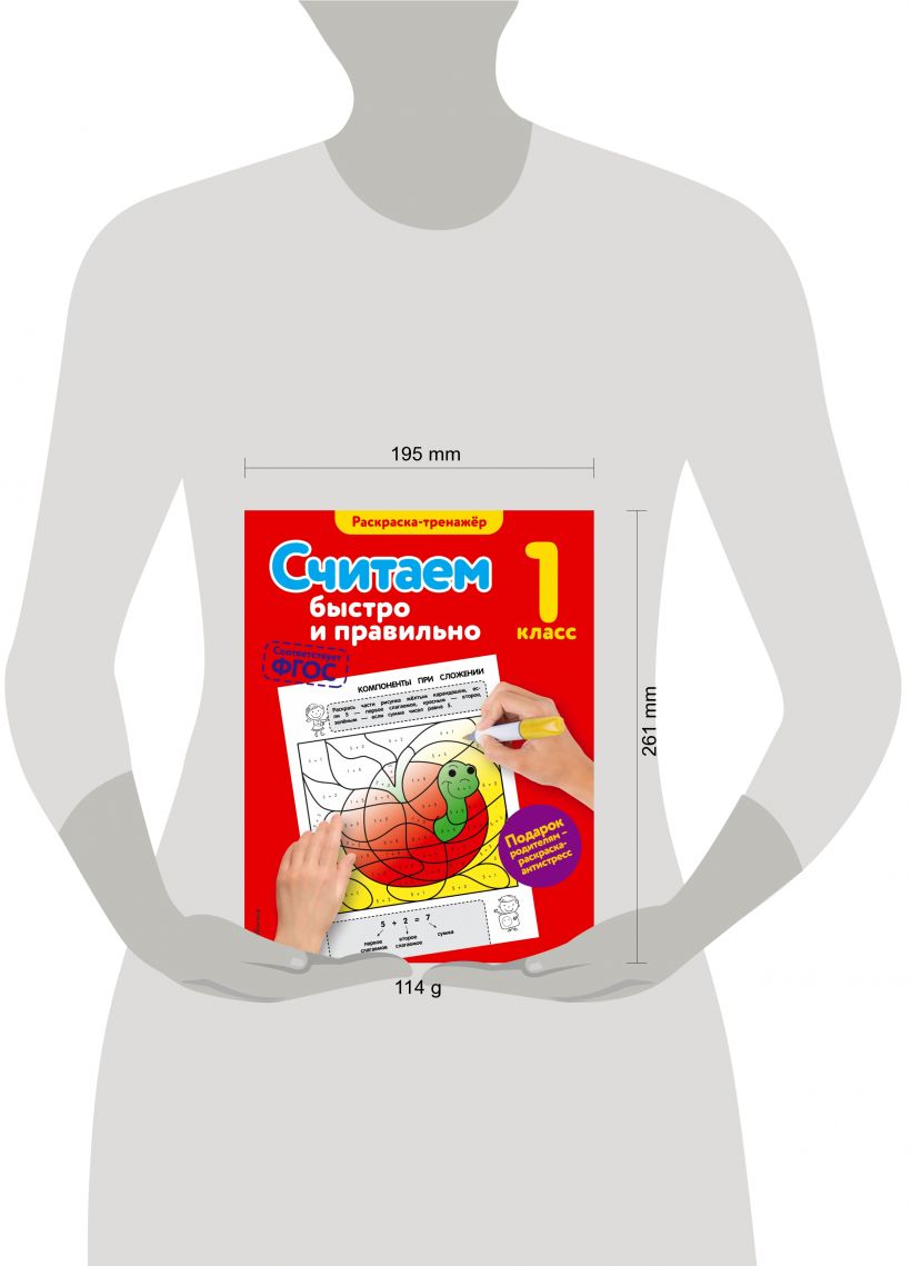 В книге 31 задание на счет и раскрашивание, цветная вкладка с рисунками-ответами, раскраской-антистрессом для родителей и грамотой, которой школьник награждается за старание и любознательность. Нестандартная подача материала в пособии поможет увеличить эффективность занятий.