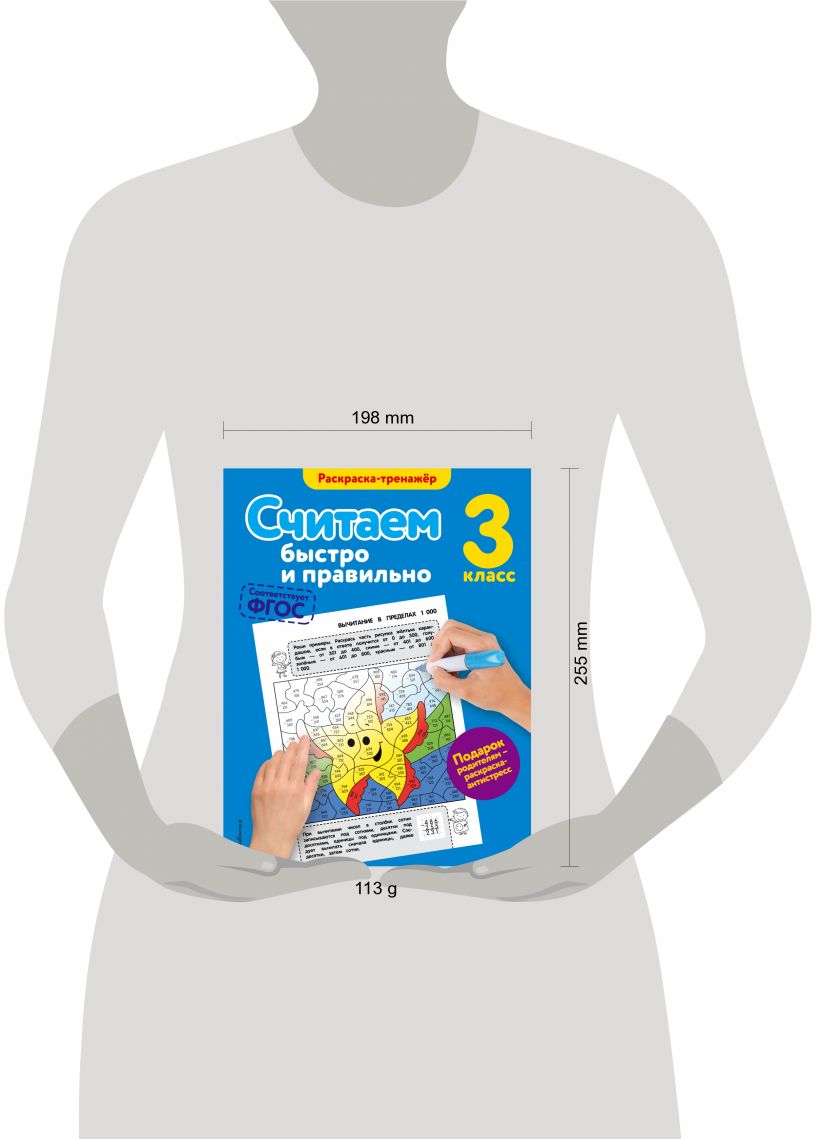 Пособие имеет необычную структуру, примеры на сложение, вычитание и сравнение в пределах 1000 даны в виде блоков для раскрашивания. Таким образом, ребенок не только сможет довести навык счета до автоматизма, но и развить мелкую моторику и внимание, проявить творческие способности, раскрасив рисунки.