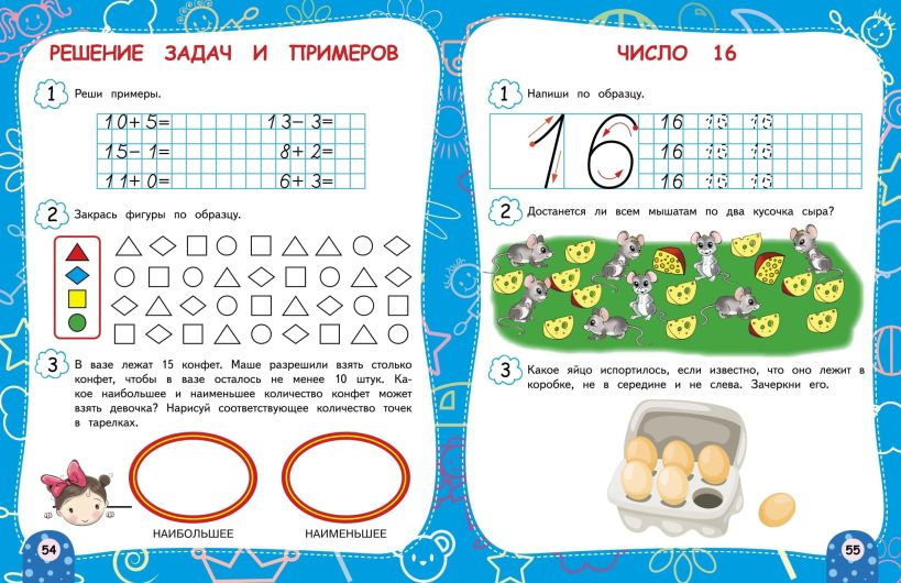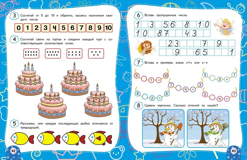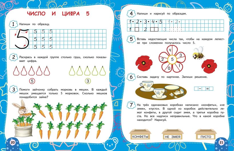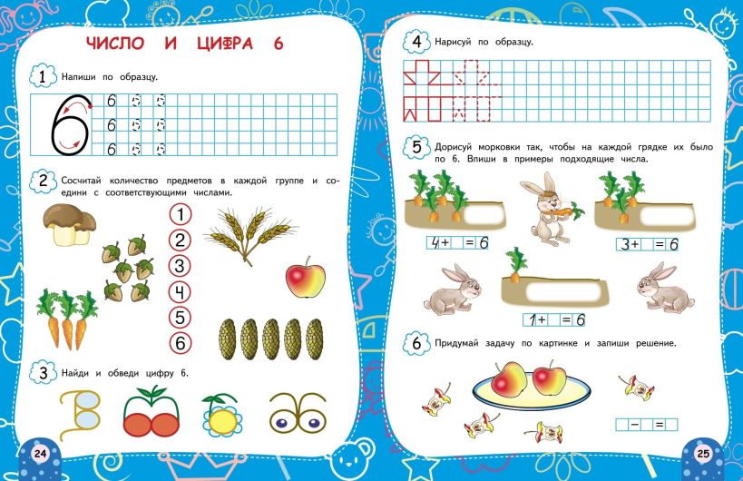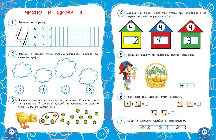 Занимаясь, ребенок познакомится с понятиями «больше — меньше», «выше — ниже», «легче — тяжелее», «раньше — позже», «один — много», «столько же», научится ориентироваться на листе бумаги, писать цифры и математические знаки, рисовать узоры и выполнять графические диктанты, познакомится с составом числа, будет решать примеры и задачи на сложение, вычитание и логику. Именно эти навыки позволят ребёнку успешно учиться в школе и раскрыть все свои таланты.