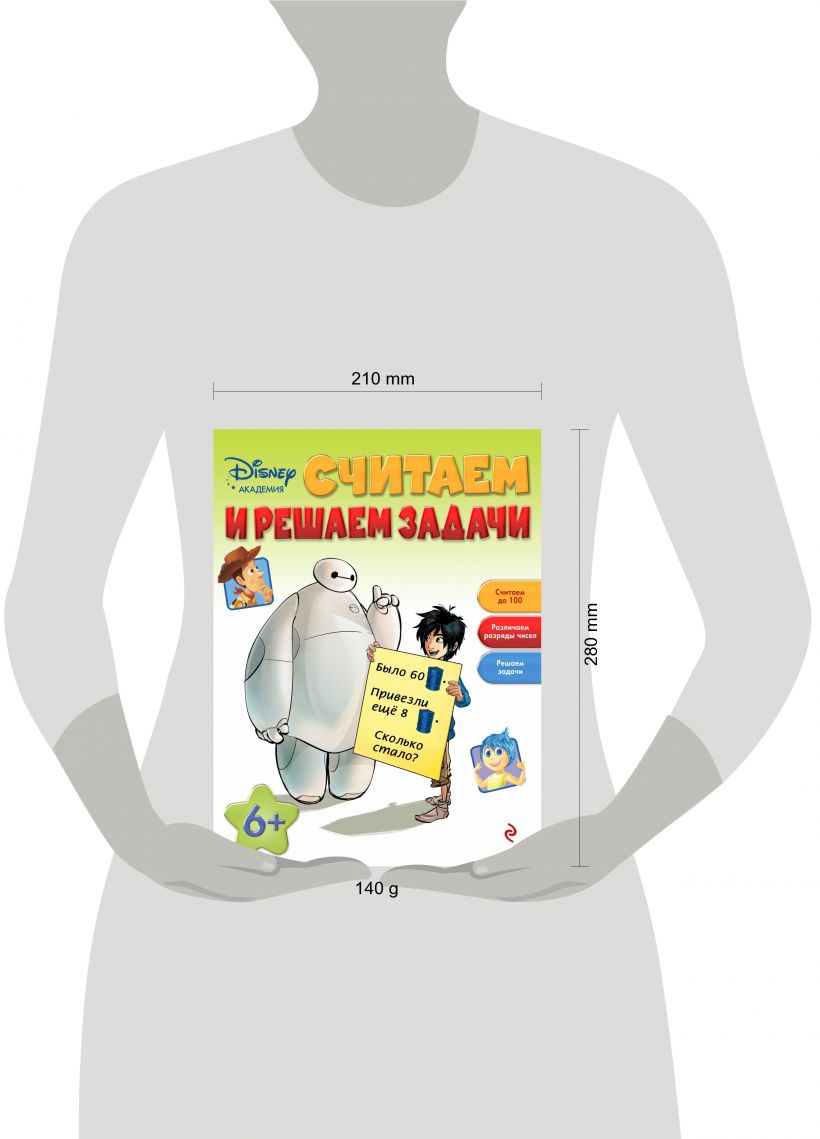 Занимаясь по этой книге, ребёнок не только весело проведёт время в компании персонажей мультфильмов Disney "Головоломка", "Город героев" и "История игрушек", но и разовьёт математическое мышление, научится считать до 100, различать разряды чисел и решать задачи. А любимые герои с удовольствием придут ему на помощь!