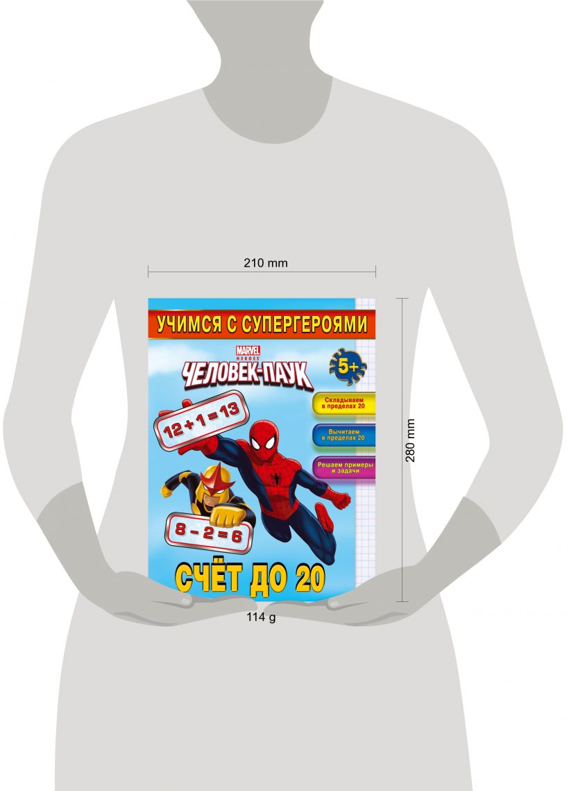 Занимаясь по этой книге, ребёнок в доступной игровой форме научится не только складывать и вычитать в пределах двадцати, но и решать примеры и простые задачи. А весёлый Человек-Паук и его друзья с удовольствием придут малышу на помощь!