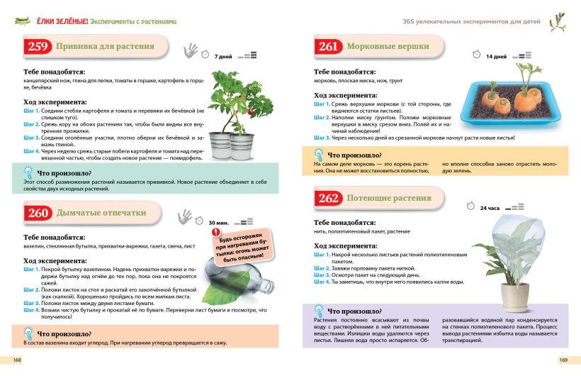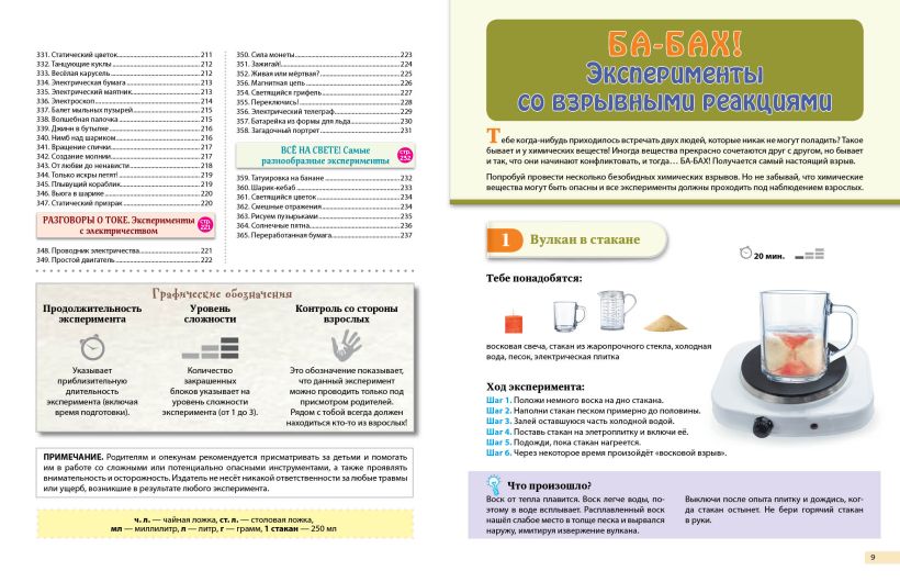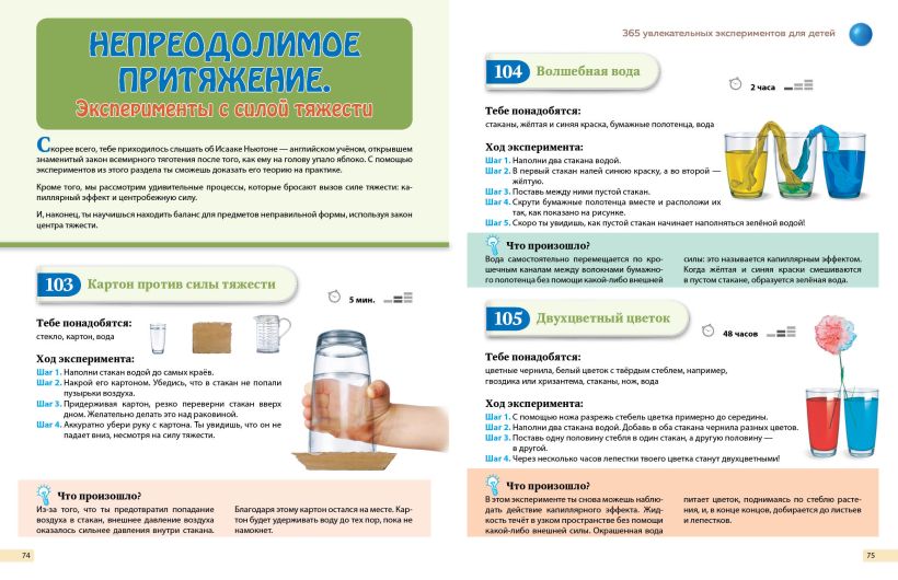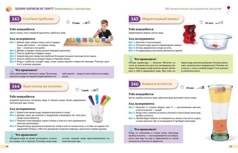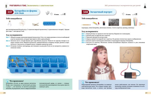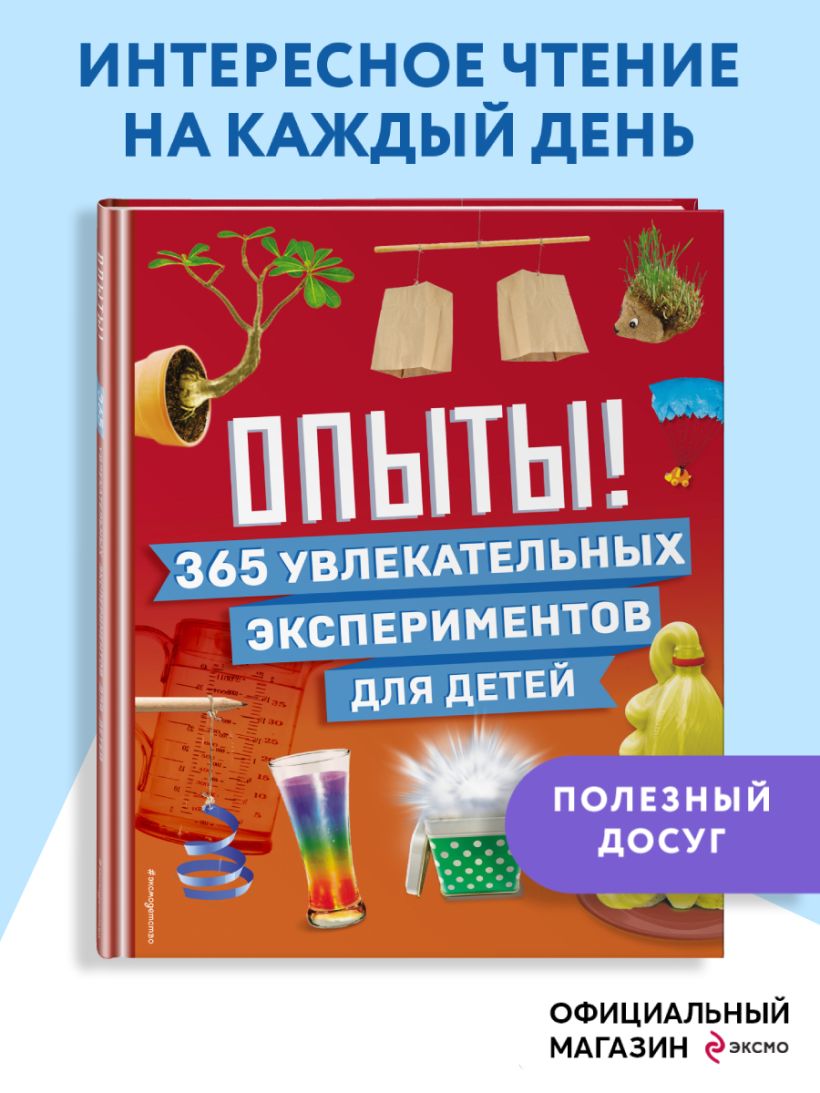 Энциклопедия на все 365 дней в году в самом популярном формате вопросов и ответов, разработанная специально для ребят 10—12 лет! В одной книге — целых 365 крутых опытов, провести которые будет легко и познавательно. Для всех экспериментов ребёнку понадобятся только подручные средства, а выполнить их можно даже дома! Каждый опыт объясняется с научной точки зрения, благодаря чему ребёнок поймёт принципы физики, химии и других точных наук. Полезная информация изложена просто и доступно, поэтому чтение увлечёт ребёнка и легко наполнит новыми знаниями и интересом к изучению мира вокруг. А яркое оформление превратит эту энциклопедию в идеальную настольную книгу любознательного школьника.