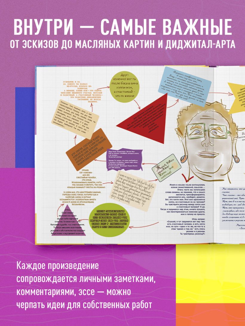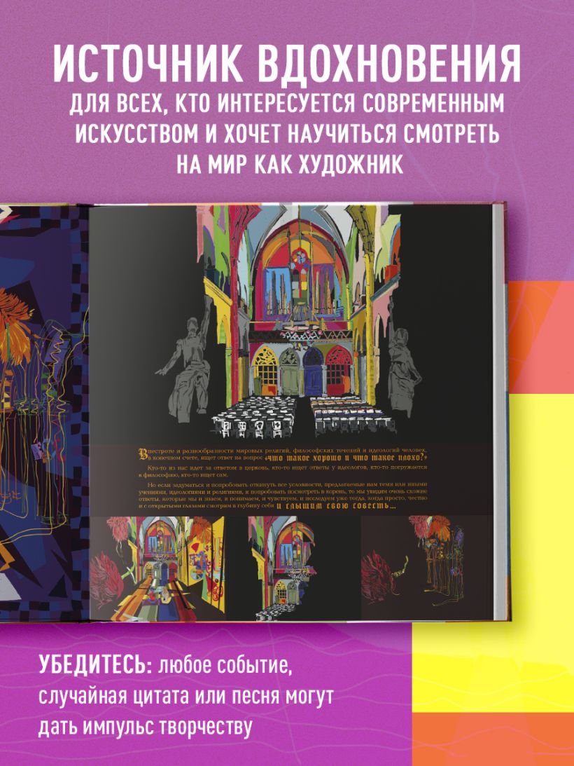 В этом артбуке автор собрал главные картины о ключевых событиях и фигурах, которые повлияли на него за последние несколько лет. В нем вы найдете красочные, абстрактные и порой абсурдные работы, которые расскажут о поездке в Италию, творчестве Джона Леннона, буддийской философии и многом другом. Работы сопровождаются авторскими заметками на полях, краткими эссе, личными ассоциациями и известными цитатами.