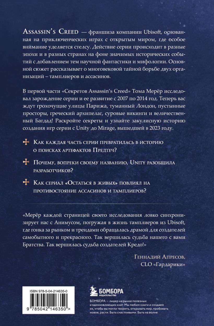 В первой части «Секретов Assassin’s Creed» Тома Мерёр исследовал зарождение серии и ее развитие с 2007 по 2014 год. Теперь вас ждут грохочущие улицы Парижа, туманный Лондон, пустынные просторы, греческий архипелаг, суровые викинги и величественный Багдад! Раскройте секреты и узнайте закулисную историю создания игр серии с Unity до Mirage, вышедшей в 2023 году.