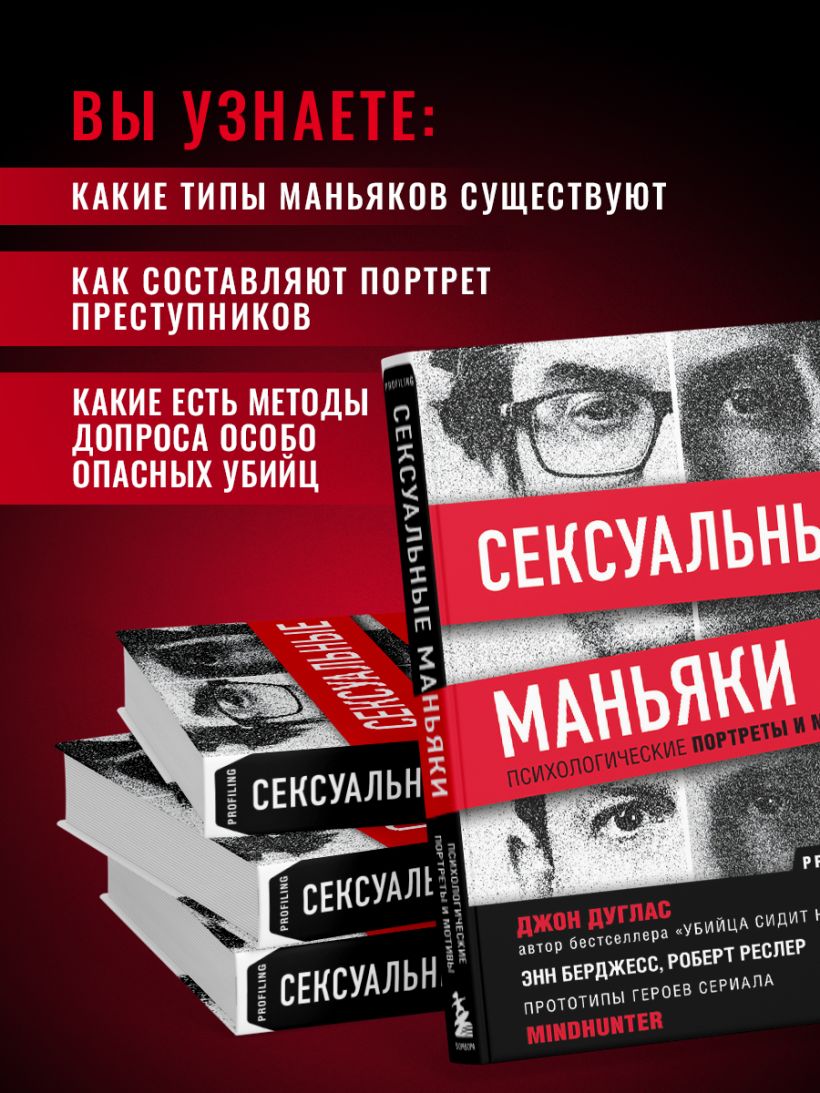 Половые преступления — один из самых страшных и, к сожалению, распространенных видов преступлений. Почему люди совершают их? Объединяет ли что-то сексуальных маньяков, и если да, то что? Какие жизненные события влияют на то, что человек начинает демонстрировать преступное поведение, и когда начинается этот процесс? На все эти и многие другие вопросы постаралась в этой книге дать ответы группа ученых и работников ФБР во главе с Джоном Дугласом. Впервые опубликованный еще в конце 80-х годов прошлого века, этот труд предугадывает бурное развитие методов профайлинга и использование искусственного интеллекта для поиска преступников.Теоретические выводы исследователей подкреплены примерами реальных дел и интервью с 36 маньяками, криминалистами, семьями жертв и теми, кому удалось выжить после столкновения с преступником.