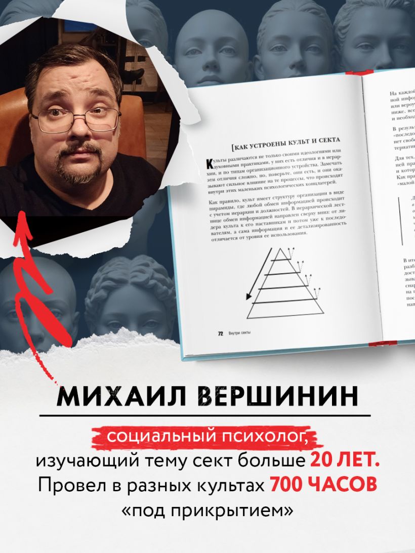Михаил Вершинин — социальный психолог, член гильдии маркетологов РФ, соавтор одного из популярных аудиоподкастов о культах, субкультурах и радикальных организациях «Неправильные эксперты» и ведущий аудиоподкаста об антикризисных коммуникациях «Уроки публичности». Провел внутри сект более 700 часов.