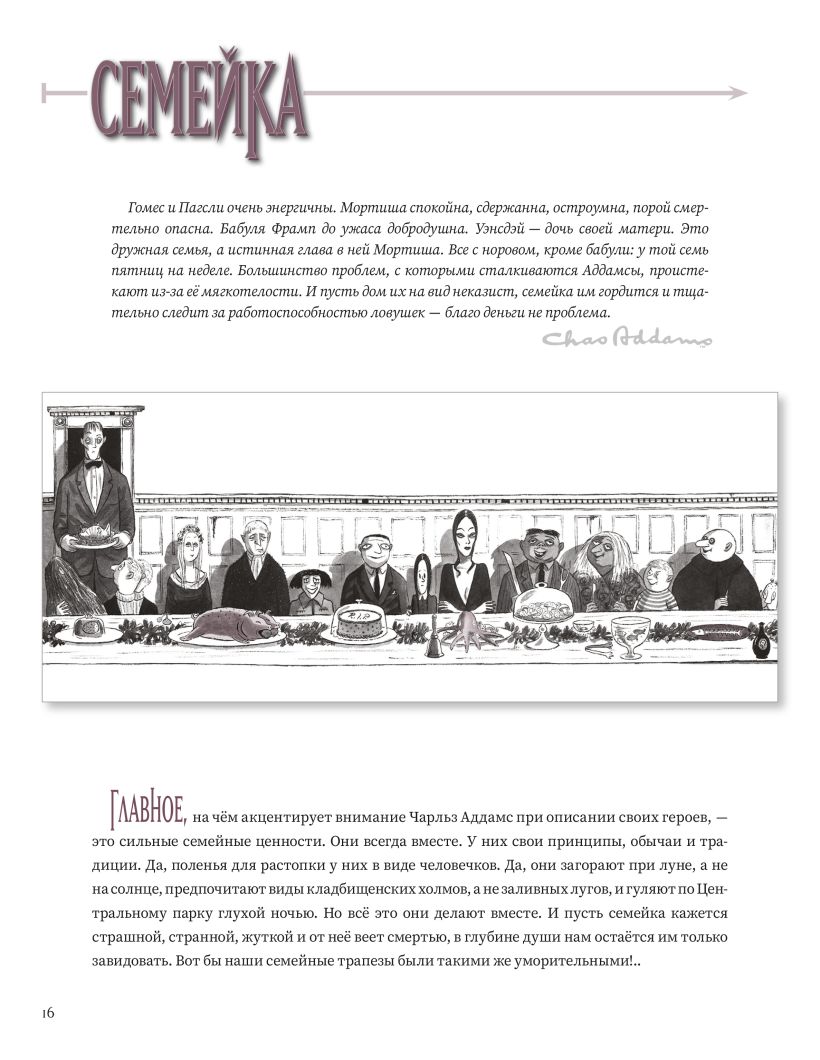«Семейка Аддамс. Дьяволюция» — первая книга об истории франшизы. В ней вы найдёте более 200 карикатур кисти Чарльза Аддамса (1912–1988), созданных в разные годы его творческой деятельности; многие из них ранее не публиковались. Автор, Кевин Мизерокки, управляющий «Фонда Ти и Чарльза Аддамсов», исследовал развитие всех членов клана (например, вы знали, что Пагсли хотели назвать Пубертом?) и снабдил каждую главу текстами самого Аддамса. Эта книга — дань уважения одному из величайших карикатуристов Америки, его неотразимо мрачному чувству юмора и изумительному художественному мастерству.