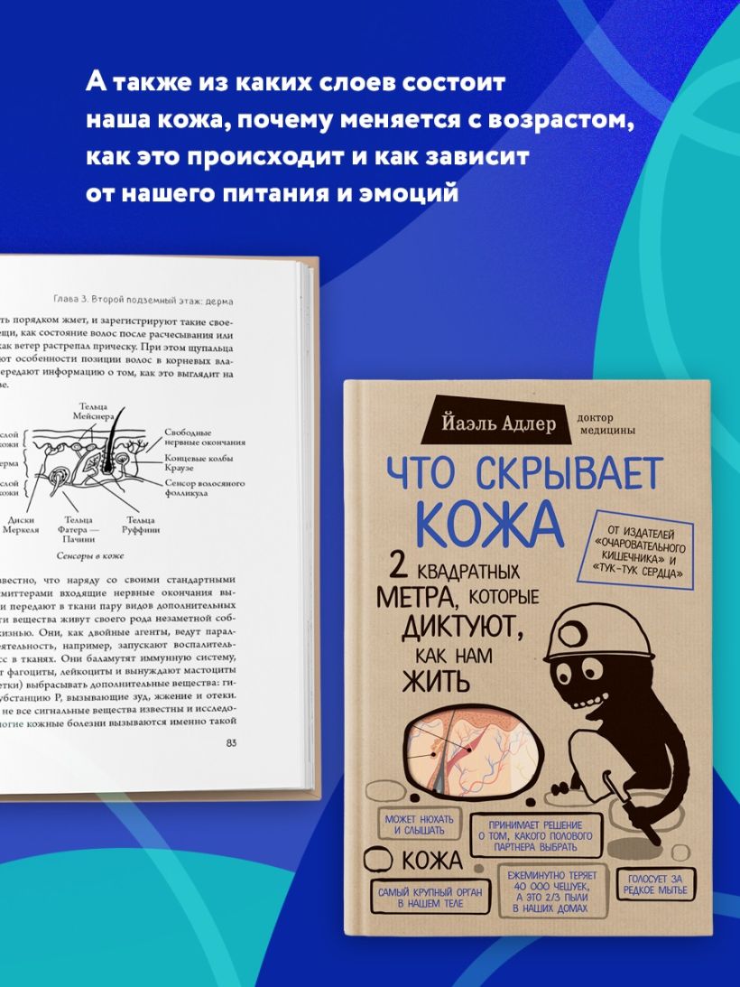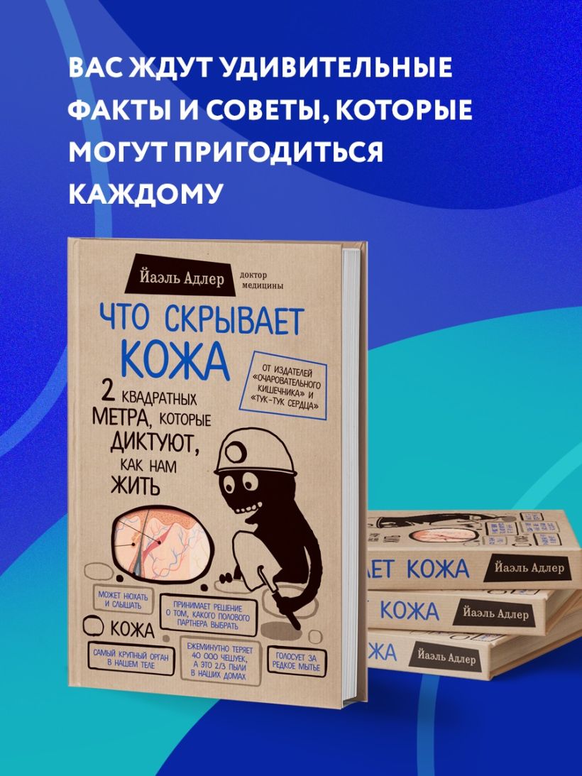 ЧЕЛОВЕЧЕСКАЯ КОЖА – удивительный орган, самый крупный из всех, что у нас есть. Ее площадь почти два квадратных метра! Это объект чувственных желаний, пленительный сосуд, в который заключена наша жизнь, в то же время - гигантская среда обитания бактерий, грибков, вирусов и паразитов. Немногие знают, что же такое кожа на самом деле, как она функционирует и как много берет на себя жизненно важных задач. Эта книга призвана помочь лучше понять нашу кожу, и таким образом и самих себя.
