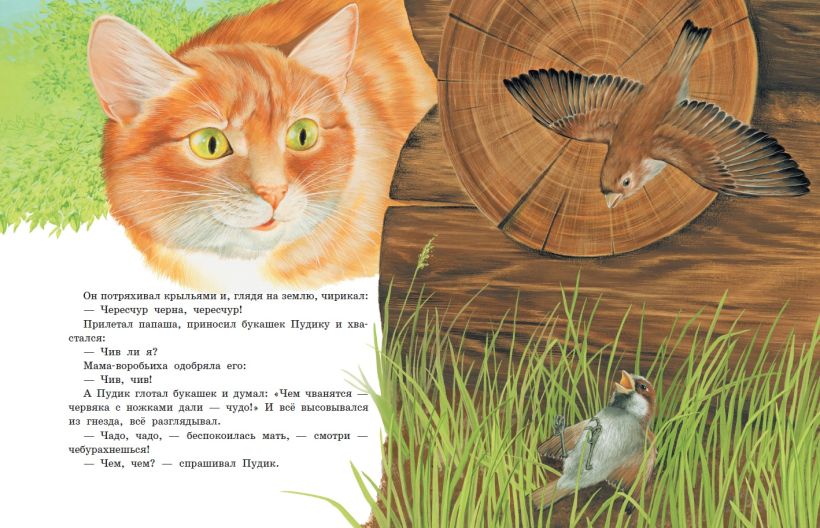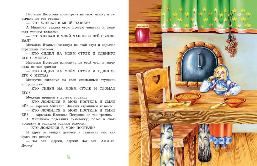 Плотная белая бумага, чёткий, хорошо читаемый шрифт и стильное оформление каждой сказки.