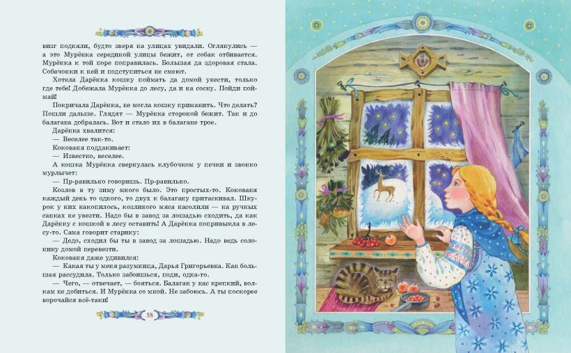В высоких сугробах посреди леса стоит заснеженная избушка. В ней возле жарко натопленной печи девочка Дарёнка слушает чудесные истории старичка Коковани и гладит мурлыкающую кошку… И, конечно, волшебство, которое появляется в этом тёплом, уютном и мирном пространстве, обязательно будет добрым и красивым.