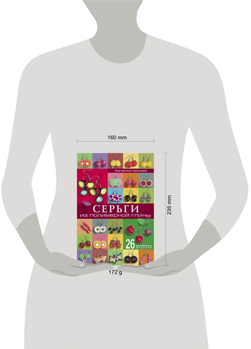 В этой книге представлены эксклюзивные изделия, которых нет и никогда не будет в продаже: серьги в форме конфет, перчиков, пластинок, мишек, вишенок, цветков, тыкв и т.д. Выполнить любую понравившуюся модель вам помогут цветные фотографии и пошаговые инструкции, а благодаря подробным описаниям вы без проблем освоите технику лепки из полимерной глины и сможете придумать что-нибудь удивительное.