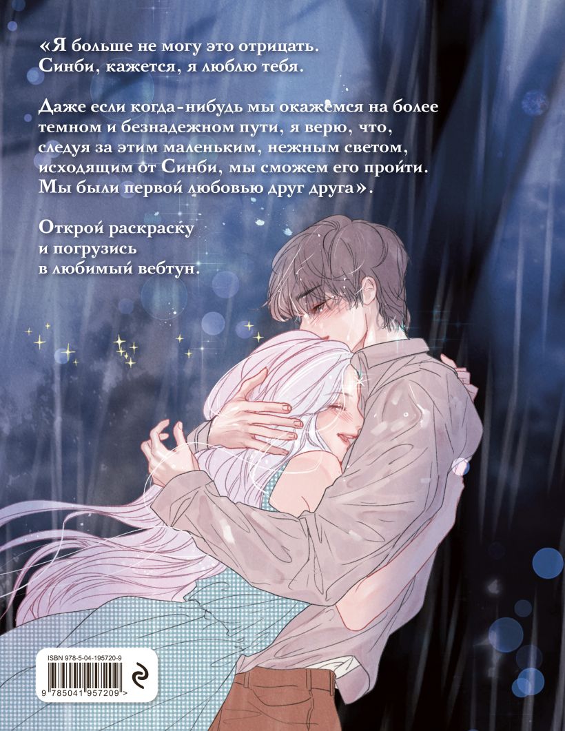 В книге представлены 52 ключевых момента из вебтуна. Раскрашивая сладкие и трогательные сцены — первую встречу таинственного существа по имени Синби и начинающего художника Гарама, признание Гарама, который просит Синби стать его музой, и их трогательное воссоединение после долгой разлуки, — ты сможешь по-новому прочувствовать эмоции героев. На левой странице представлен оригинальный рисунок из вебтуна, который можно использовать как образец при раскрашивании. Создай свой собственный шедевр, используя разнообразные цвета!