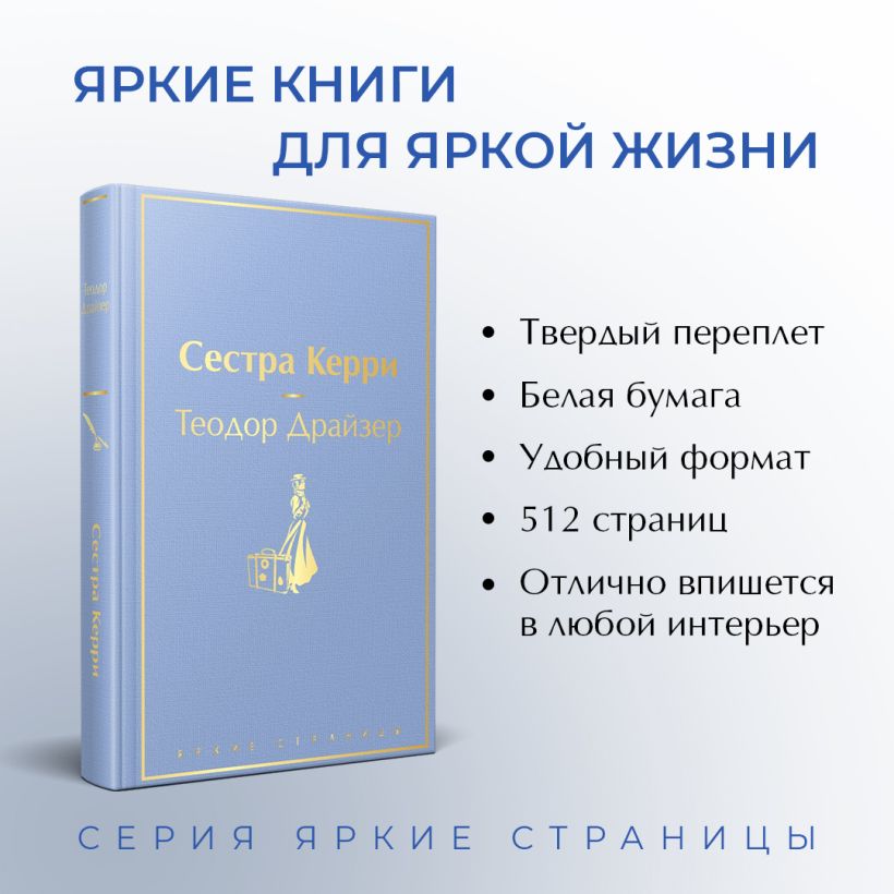 «Сестра Керри» — первый роман Теодора Драйзера, выпущенный на рубеже веков в 1900 году. Для мировой литературы этот роман стал одним из символов американского реализма: с неподдельной правдоподобностью Драйзер рисует картину провинциальной актрисы, ищущей счастья в большом городе…