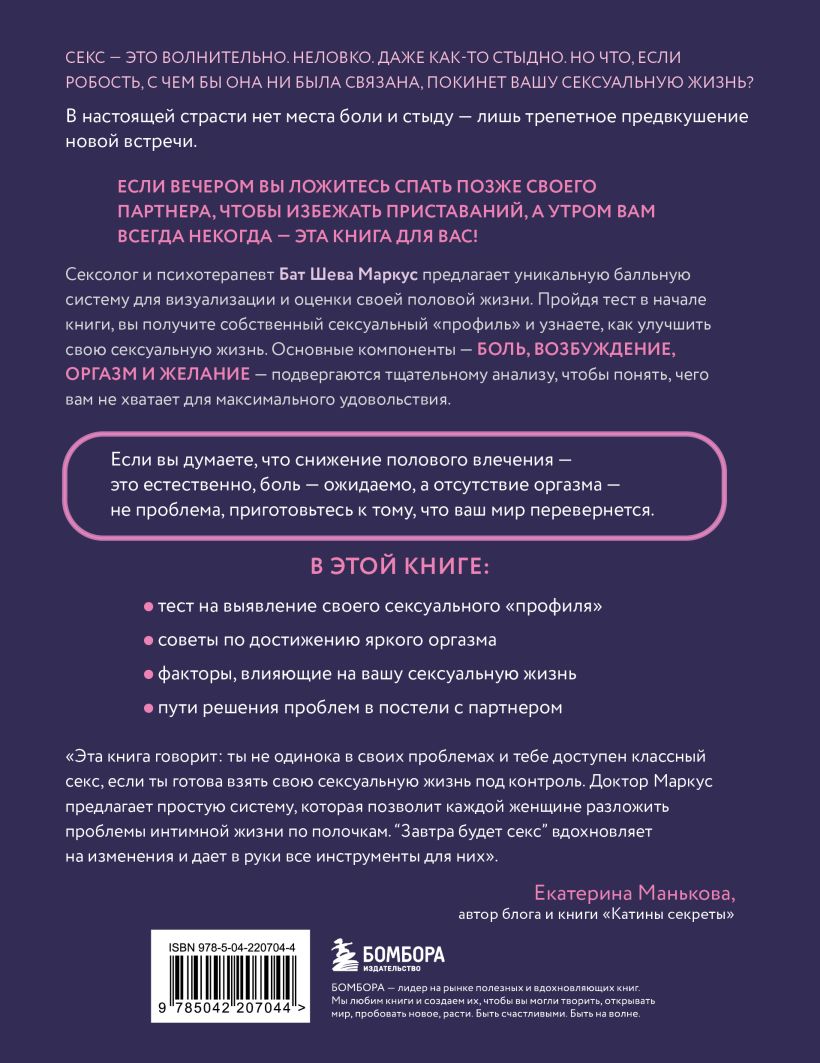 Забудьте об отсутствии желания и проблемах с оргазмом. Сексолог и психотерапевт Бат Шева Маркус предлагает уникальную балльную систему для визуализации и оценки своей половой жизни. Пройдя тест в начале книги, вы получите собственный сексуальный «профиль» и узнаете, как улучшить свою сексуальную жизнь. Основные компоненты — боль, возбуждение, оргазм и желание — подвергаются тщательному анализу, чтобы понять, чего вам не хватает для максимального удовольствия.