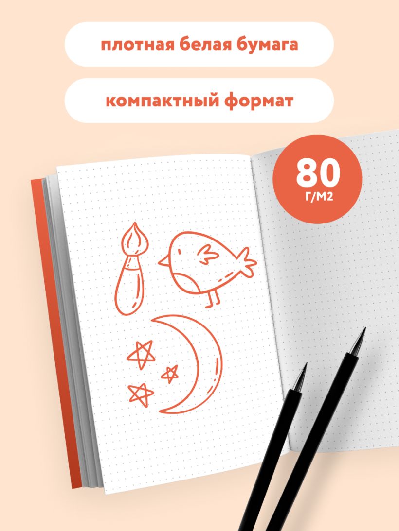 Яркий блокнот в компактном формате станет вашим надежным спутником в путешествиях, на прогулке в парке, в стенах школы или института, а также на рабочем месте. Он создан для того, чтобы вы могли записывать свои цели и планы, делать удивительные зарисовки, фиксировать новые идеи и воплощать в слова все, что придет на ум. Блокнот в точку — ваш идеальный помощник для планирования и творчества. Он является частью серии «Записывай, планируй, создавай! Блокноты для записи идей и творчества». Это блокноты, которые окружат вас эстетикой и привнесут атмосферу умиротворения и гармонии, несмотря на любое напряжение вокруг.