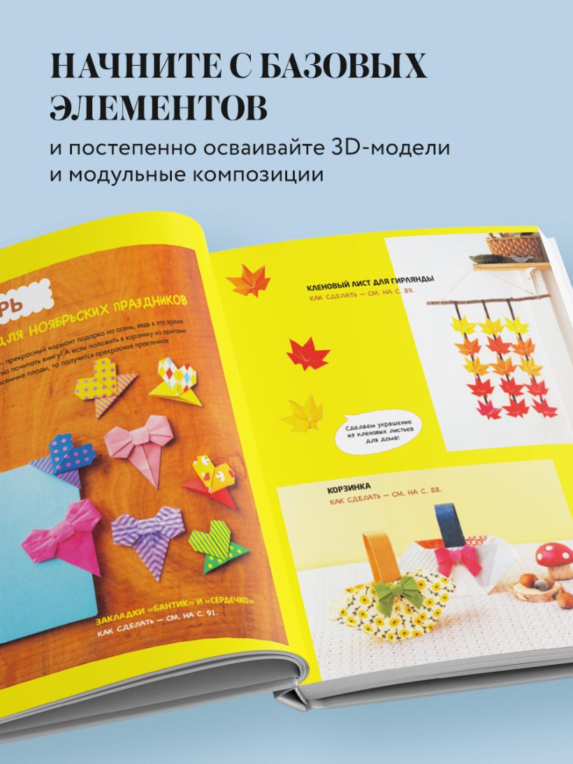 Новый авторский метод обучения технике оригами! Это отличная находка для самостоятельных любителей самоучителей — внутри собраны понятные и доступные схемы, в который сможет разобраться даже новичок. Эта книга подойдет и для детей — яркие картинки, красочные цвета и 3D-фигурки не только привлекут внимание малыша, но и помогут в развитии мелкой моторики, логики и отлично подготовят к школе! Внутри подробные пошаговые объяснения в иллюстрациях, дополненные схемами для объяснения наиболее сложных моментов. Более 50 моделей оригами, от простых и традиционных до самых неожиданных и оригинальных! Отличный подарок на любой праздник!