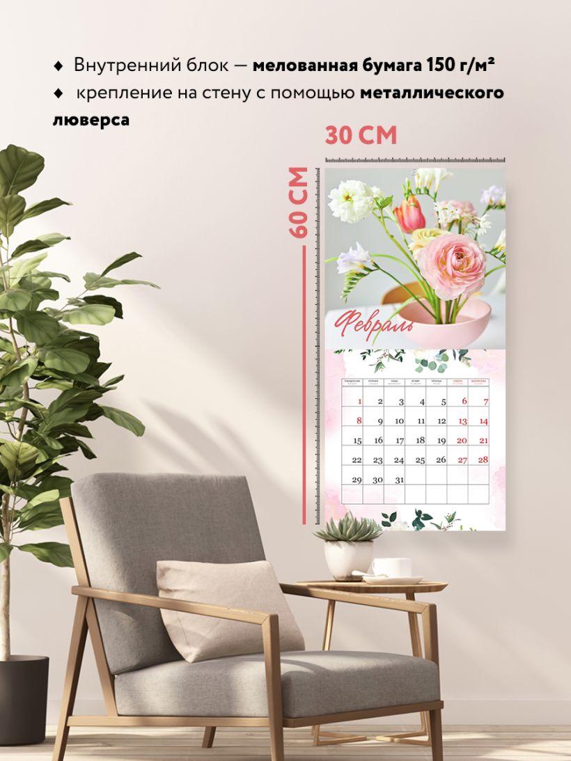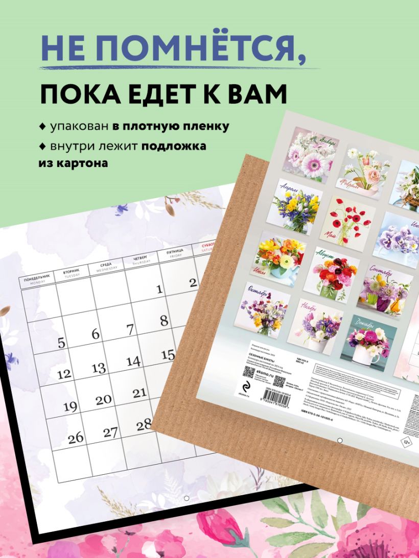 Белые, красные, с ленточкой, в вазочке и в коробочке — шедевры флористики в одном календаре. Каждый месяц представлен оригинальным букетом в соответствии с цветовой гаммой сезона.