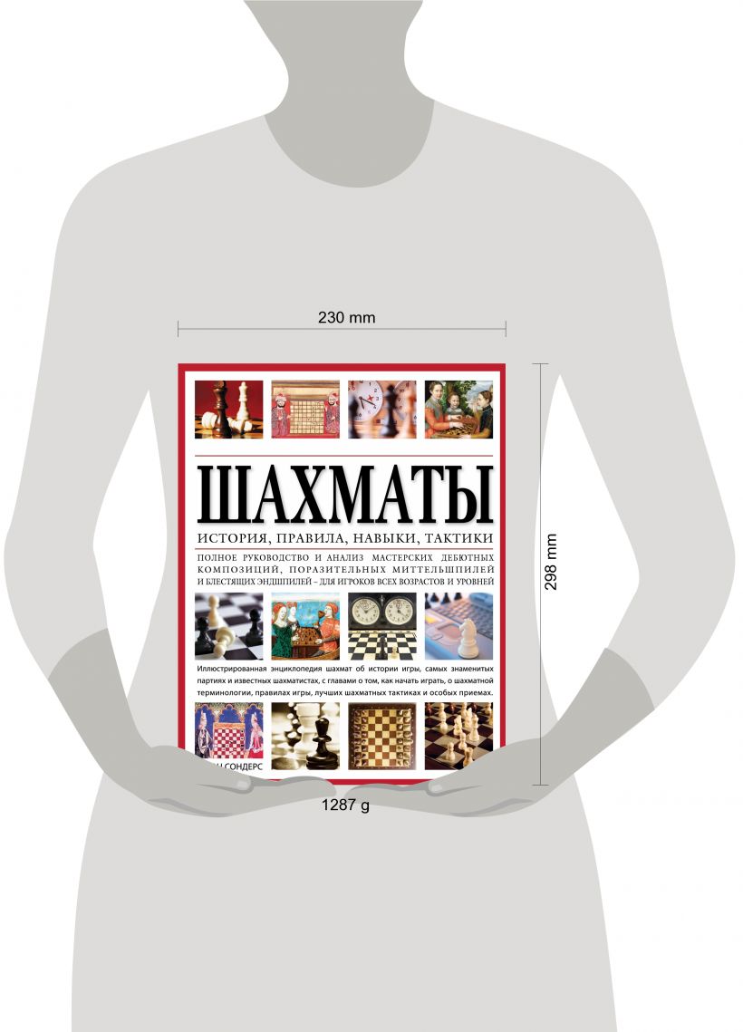 О чем эта книга В этом издании собрано все самое главное и самое интересное - история шахмат от зарождения игры до наших дней, рассказы о судьбах величайших шахматистов. А также правила и терминология игры, анализ самых впечатляющих шахматных партий, советы и рекомендации игрокам всех возрастов и уровней. Для кого эта книга Эта книга для тех, кто хочет научиться играть в шахматы, но не знает, с чего начать, для тех, кто уже умеет играть, но хочет улучшить свои навыки, а также для тех, кто хочет узнать множество интереснейших фактов из истории игры, о великих шахматистах, и оценить самые известные партии, сыгранные за долгое время существования шахмат. Фишка книги Эта книга для игроков всех уровней, в ней рассматриваются различные стратегии защиты и атаки - от самых простых до самых сложных. При этом книга написана по-настоящему простым языком, читать ее будет интересно любому человеку. Кроме того, в книге более 700 очень красочных фотографий и иллюстраций, что делает ее прекрасным подарочным изданием.