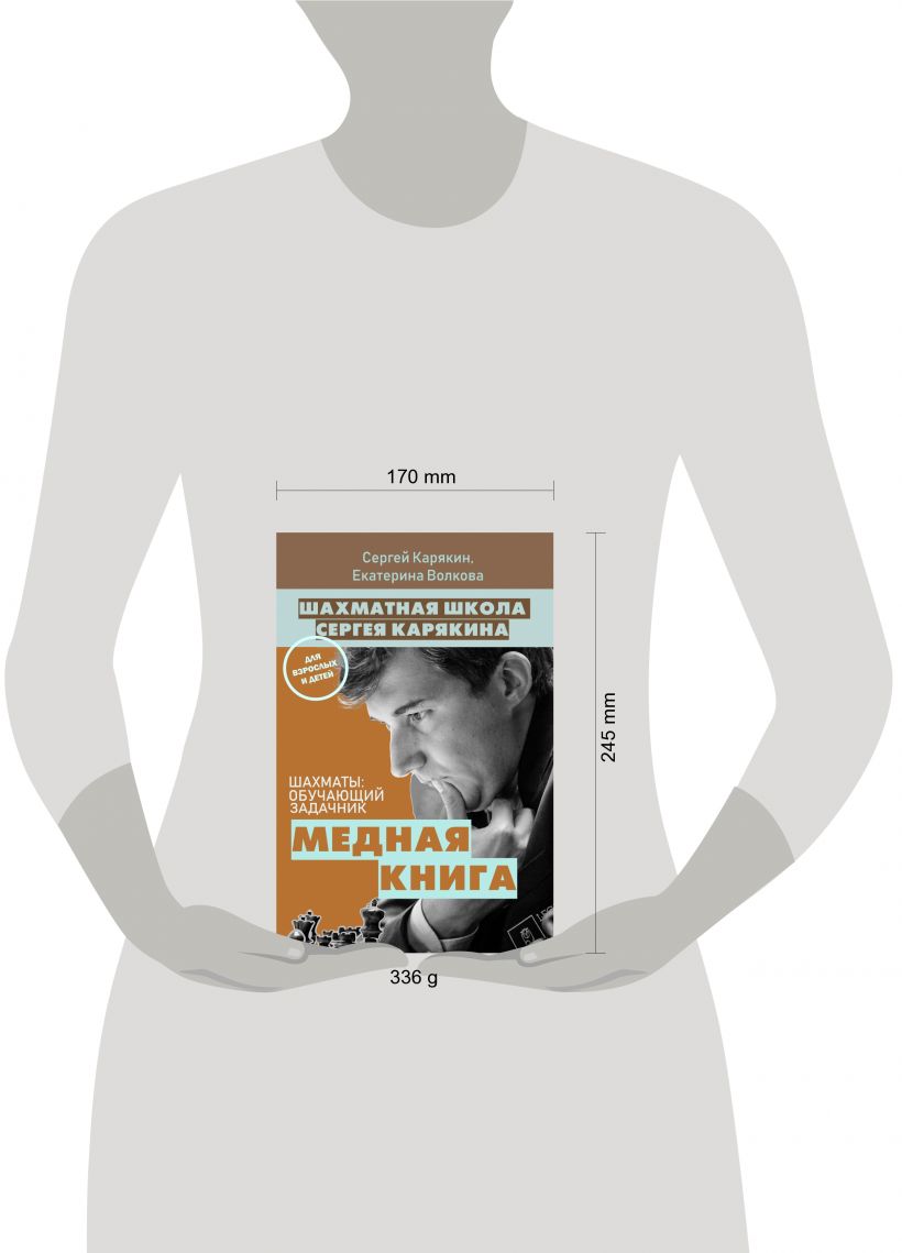 "Медная книга" – первая книга серии шахматных задачников ведущего шахматиста мира Сергея Карякина. Книга-задачник предназначена для начинающих шахматистов и содержит более 400 заданий на мат в один ход. Задания расположены по возрастанию сложности и помогут юному шахматисту натренировать умение находить мат в один в шахматной партии быстро и верно.