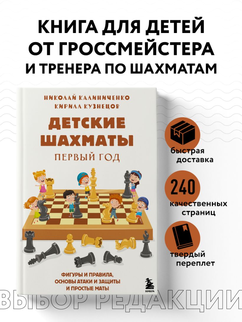 Новый учебник шахмат от гроссмейстера Николая Калиниченко и тренера Кирилла Кузнецова. С ним ребёнок дошкольного и младшего школьного возрастов сможет научиться правильно передвигать фигуры на шахматной доске, нападать, умело защищаться и просчитывать дальнейшие ходы, чтобы ставить простые маты.