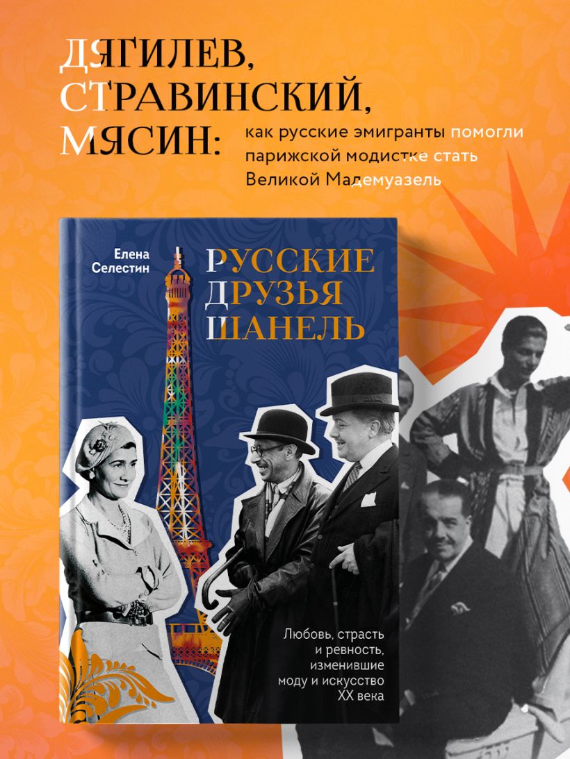 Каким образом парижская модистка стала Великой Мадемуазель? Мало кто знает, что своим успехом она обязана не только собственному таланту и новаторству, и даже не богатым и знатным любовникам. В элитный круг Парижа Шанель попала прежде всего благодаря именитым русским эмигрантам, с которыми ее познакомила близкая подруга Мися Серт. Роман «Русские друзья Шанель» основан на документальных сведениях, в частности на записях друга Коко Шанель Поля Морана, который при ее жизни так и не получил разрешение на их издание. В нем автор — писательница и искусствовед Елена Селестин — в красках передает детали знакомства, дружбы и сотрудничества Шанель с Сергеем Дягилевым, Игорем Стравинским, Леонидом Мясиным, Сергеем Лифарем, великим князем Дмитрием Романовым и княгиней Марией Павловной, Пикассо и его русской женой Ольгой Хохловой. Роман погружает читателя в атмосферу Парижа 1920-х годов, период становления нового искусства, вдохновенного творчества, но в то же время неприкаянности, ревности и нехватки денег, — когда «при дворе Дягилева» не прекращалась напряженная работа и кипели страсти, в том числе при участии Габриэль Шанель.