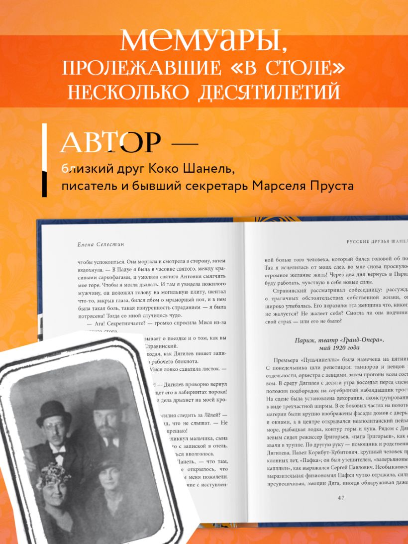 Живые диалоги и редкие архивные фото действующих лиц очень точно иллюстрируют характеры героев, их образы, жизнь русской интеллигенции в эмиграции, впервые рассказывая историю появления Коко Шанель в блестящем круге гениев и легенд.