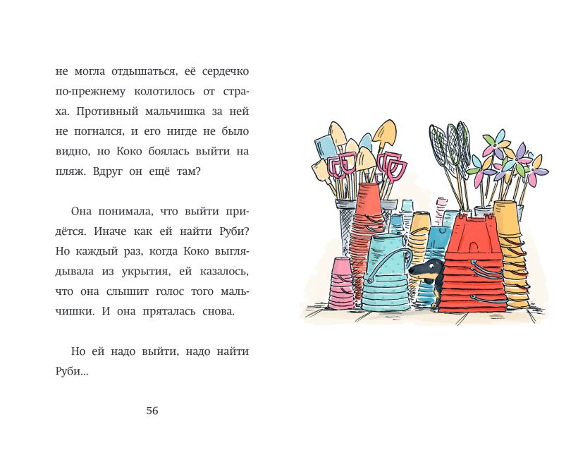 Эта трогательная история о таксе Коко, которая впервые попадает на морской пляж и сразу же находит себе приключение: щенок теряется среди новых мест и громкого шума. Но будьте уверены, заботливые хозяева ни за что не оставят малыша в беде!