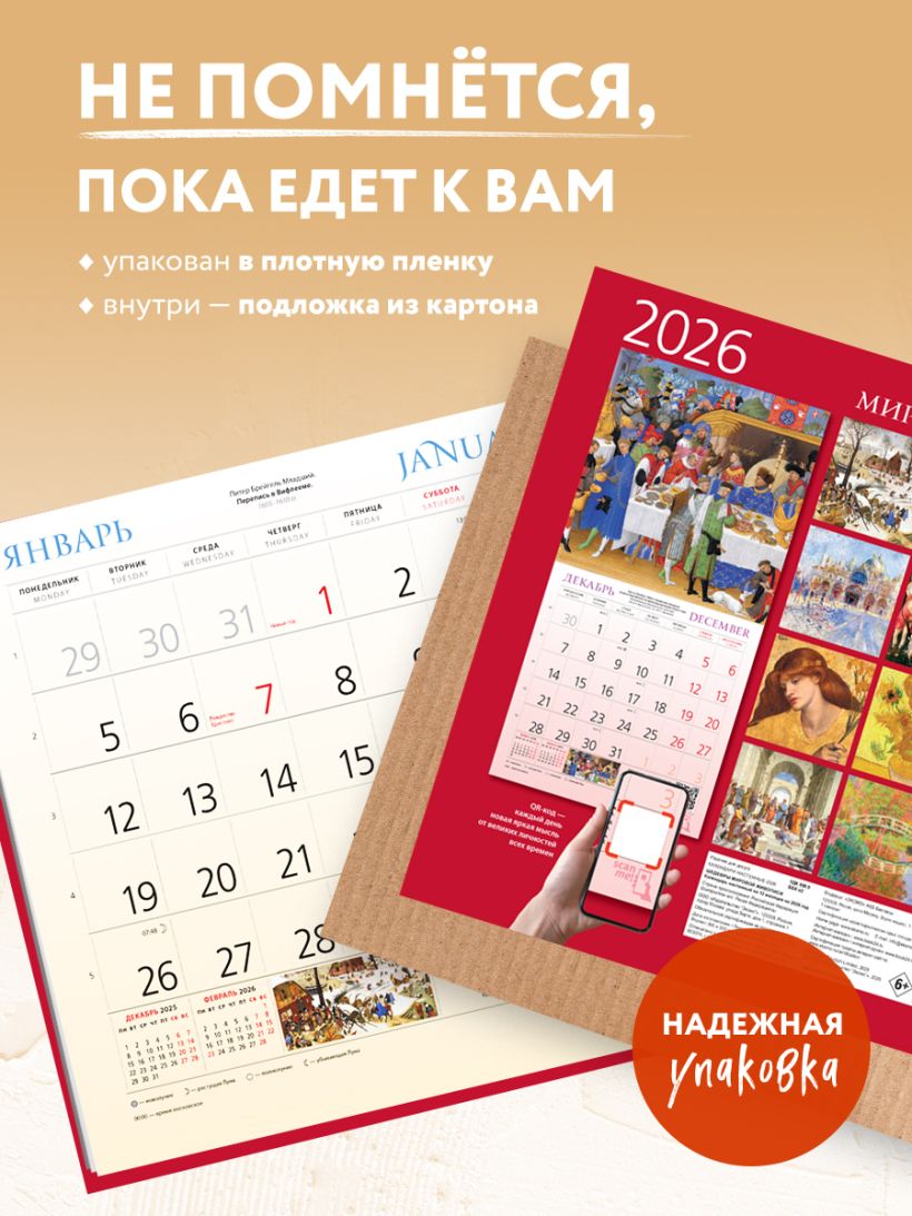 В этом настенном перекидном календаре на 2026 год представлены знаменитые картины великих художников. Повесьте этот календарь в своем доме или на рабочем месте, и он достойно украсит любой интерьер. А календарный блок напомнит о важных событиях года. В центре календаря помещен большой арт-постер, который может стать отдельным декоративным украшением интерьера.
