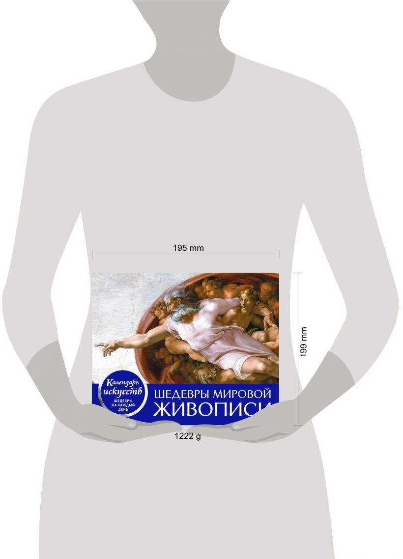 Этот стильный, оригинальный, удобный календарь представляет шедевры мировой живописи. Произведения ранних веков, начало, расцвет и закат Возрождения, барокко и рококо, классический реализм с его основательностью, серьезностью и монументальностью, которую попытались преодолеть великие экспериментаторы, те, кто с середины XIX века непрерывно искал все новые пути переосмыслить меняющуюся реальность. Здесь представлен и весь спектр жанров: радующий глаз пейзаж, раскрывающий тайные чувства портрет, заставляющие задуматься о вечном полотна на библейские сюжеты, историческая, жанровая и декоративная живопись.