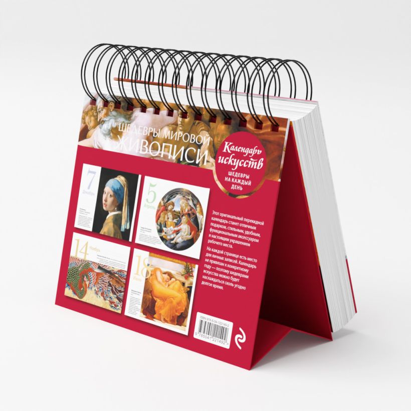 Календарь с шедеврами мирового искусства создан для настоящих ценителей прекрасного — тех, кто верит, что искусство должно не просто украшать жизнь, но и наполнять ее особым очарованием. Каждый новый день будет начинаться с вдохновения. Просто представьте: чашка чая и гениальное произведение, которое пробуждает эмоции и дарит свежие идеи. Идеальный формат для тех, кто ценит эстетику, но не хочет перегружать пространство. Прекрасный подарок творческим людям, ценителям искусства и всем, кто верит, что без красоты нельзя прожить ни дня. Почему этот календарь особенный: — 365 дней красоты — самые прекрасные шедевры мировой живописи. — Стильный дизайн — украсит рабочий стол и создаст хорошее настроение. Преимущества: — Удобный формат (80×140 мм) — поместится на рабочем столе или тумбочке. — Плотная бумага (115 г/м²) — приятная на ощупь, подходит для заметок карандашом или ручкой. — Подставка в комплекте — для красивого размещения на столе. Пусть шедевры вдохновляют вас каждое утро — ведь мир становится ярче, когда в нем есть место искусству!