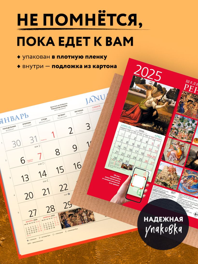 В этом настенном перекидном календаре на 2025 год представлены знаменитые картины великих художников из эпохи Ренессанса. Повесьте этот календарь в своем доме или на рабочем месте, и он достойно украсит любой интерьер. А календарный блок напомнит о важных событиях года. В центре календаря помещен большой арт-постер, который может стать отдельным декоративным украшением интерьера.