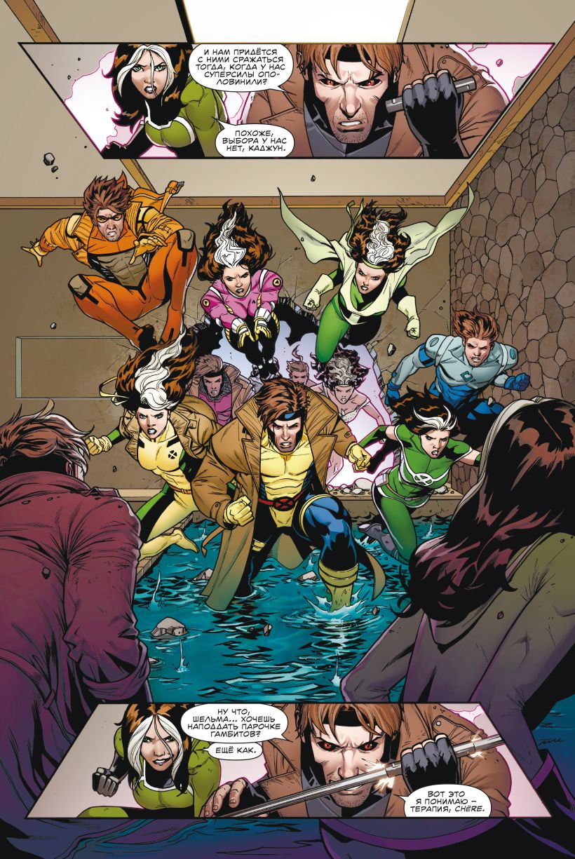 И сами они от этого не в восторге! Китти Прайд отправляет Шельму и Гамбита под прикрытием на поиски похищенных мутантов... Вскрывшиеся подробности станут для героев шоком. Смогут ли новые приключения помочь парочке вновь сблизиться? Оказавшимся в лапах новой злодейки — мутанта по прозвищу Щедрость — Шельме и Гамбиту придётся схлестнуться в битве с самими собой! И сделать выбор — спасать ближних или свою любовь... Итак, вас ждут: поцелуи! Амнезия! Обмен суперсилами! Шутейки! Манипуляции с эмоциями! Злодеи и их пафосные монологи! Клоны-двойники-големы! Ставки как никогда высоки... Даже по меркам этой икс-парочки!