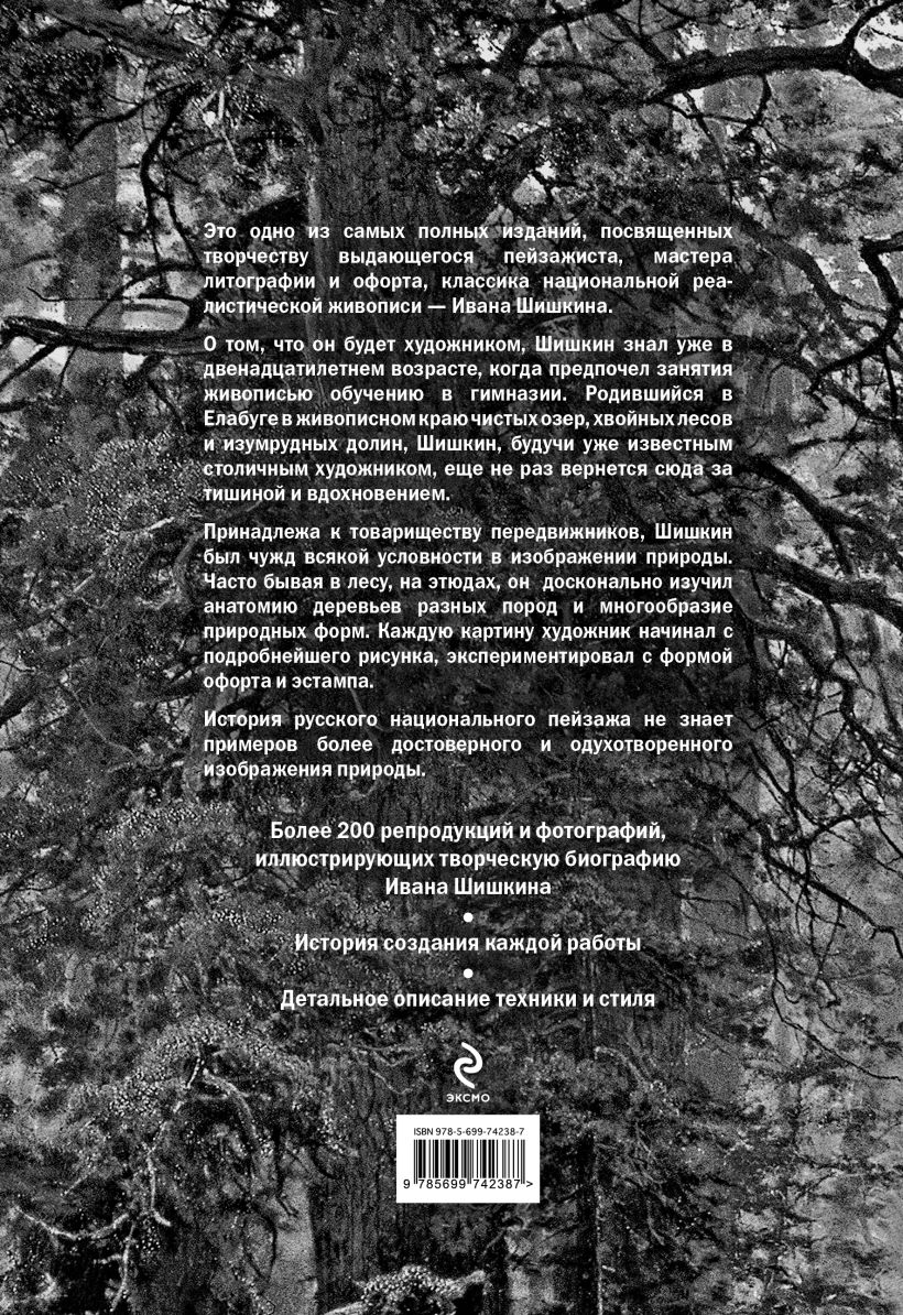 Книга "Шишкин. Жизнь и творчество" повествует о творческой судьбе одного из самых знаменитых из самых любимых русских русских художниковхудожников. Шишкин – выдающийся пейзажист, мастер литографии и офорта, классик национальной реалистической живописи. Художник был чужд всякой условности в изображении природы, он досконально изучил многообразие природных форм и старался наиболее точно передать их на своих полотнах. Особенность картин Шишкина в том, что они передают все мельчайшие детали русского пейзажа и обладают непостижимой одухотворенностью.