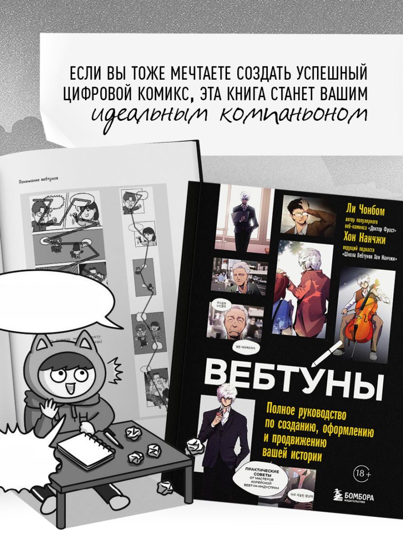 В индустрии комиксов последние несколько лет можно наблюдать большие изменения: все больше людей предпочитает вебтуны классическим печатным изданиям. Если вы тоже мечтаете создать успешный цифровой комикс, эта книга станет вашим идеальным компаньоном. Ли Чон Бом и Хон Нан Чжи, автор популярного веб-комикса «Доктор Фрост» и ведущий подкаста «Школа Вебтунов Хон Нан Чжи», предлагают начинающим коллегам проверенные методы создания запоминающихся персонажей, разработки захватывающего сюжета и адаптации своих работ к формату веб-комикса. Эта книга не просто набор советов — это практическое руководство, которое вдохновит вас на создание визуальных шедевров, способных покорить сердца аудитории по всему миру.