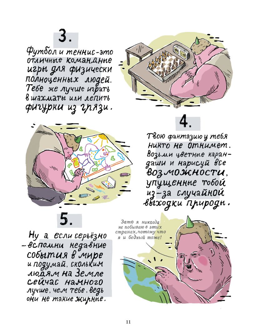 Боишься публичных выступлений, высоты, ответственности? А еще насекомых, грозы или монстров под кроватью? Каждый сталкивался с такими страхами и часто прятался, вместо того чтобы посмотреть им в глаза. Как побороть свои страхи и пройти мягкую терапию? Тебе поможет… кот! Он любит устраивать суету, гоняться за едой и ворчать на хозяйку, но при этом делится психологическими советами, словно заправский психолог. Эту необычную историю создала молодая и талантливая девушка — Лапка Художника — иллюстратор и будущий психолог. Она ведет веселый блог с комиксами и короткими жизненными роликами, в которых ты точно узнаешь себя. Там и кот, скачущий по ночам, и комар, сводящий с ума, и мозг, застрявший на старой песне из рекламы. Котокомикс для тех, кто: - устал беспокоиться и тревожиться по пустякам; - хочет понять свои эмоции без скучных теорий; - готов прислушаться к советам кота-психолога; - обожает юмор, комиксы и жизненные зарисовки. Каждая глава обозначена определенным цветом, поэтому ты никогда не запутаешься, где именно находишься: в зеленой главе с детскими страхами или в фиолетовой — с экзистенциальными. «Эта книга как теплый разговор с собой в моменты тревоги. С юмором, легкостью и неожиданной глубиной она помогает взглянуть на страхи по-другому — мягко, бережно и с улыбкой. Кот-психолог протянет свою лапку помощи. И расскажет, как легче и спокойнее воспринимать эту жизнь». — Любовь Стяпшина, автор и иллюстратор метафорических открыток «Дом твоего сердца» «Добрые комиксы о девочке, которая боялась всего на свете. Но, ура, рядом появляется кот: пушистый, спокойный и мудрый. Он не смеётся над страхами, а объясняет, что всё не так уж страшно. Очень милая, тёплая и поддерживающая книжка. Особенно когда тревожно и хочется, чтобы кто-то просто был рядом». — Алла Гончарова, автор проекта Curavamnedura