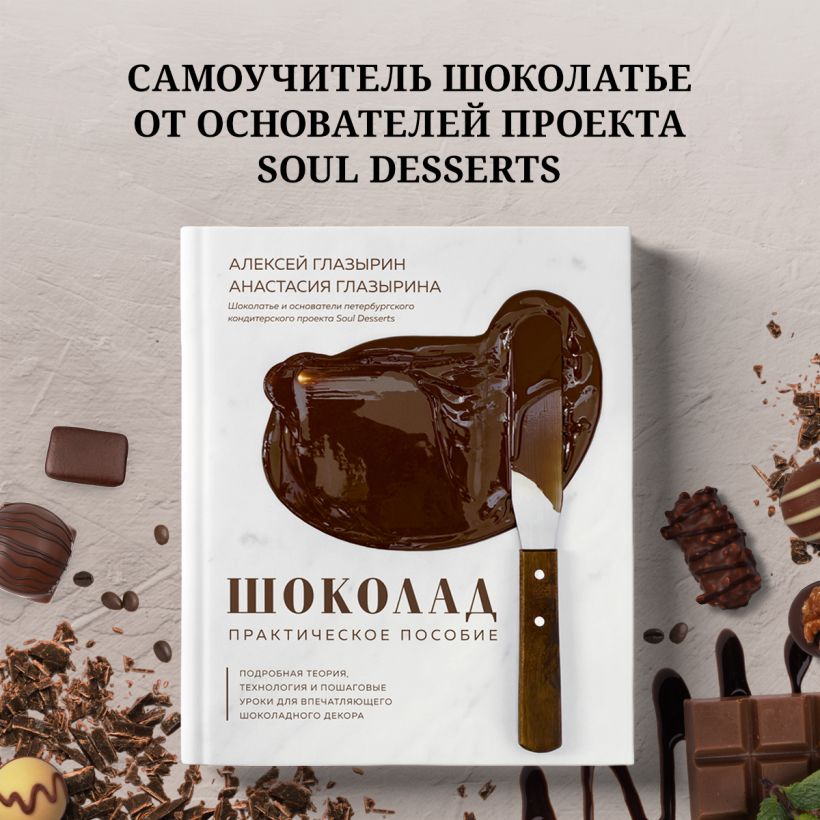 Работа с шоколадом по истине завораживающее зрелище. Но что делать, если есть желание открывать для себя новые профессиональные горизонты, но отчаянно не хватает информации. Тогда на помощь приходит опыт тех, кто готов делиться бесценными советами, давать наставления, рассказывать о подводных камнях и техниках, кто готов буквально "поставить руки" новичкам, сделать максимум, чтобы работа с шоколадом не пугала, а позволяла экспериментировать, творить и наслаждаться процессом. Книга от основателей петербургского авторского проекта Soul Desserts Алексея и Анастасии Глазыриных поможет начинающим кондитерам и даст дополнительный опыт для тех, кто уже в теме.