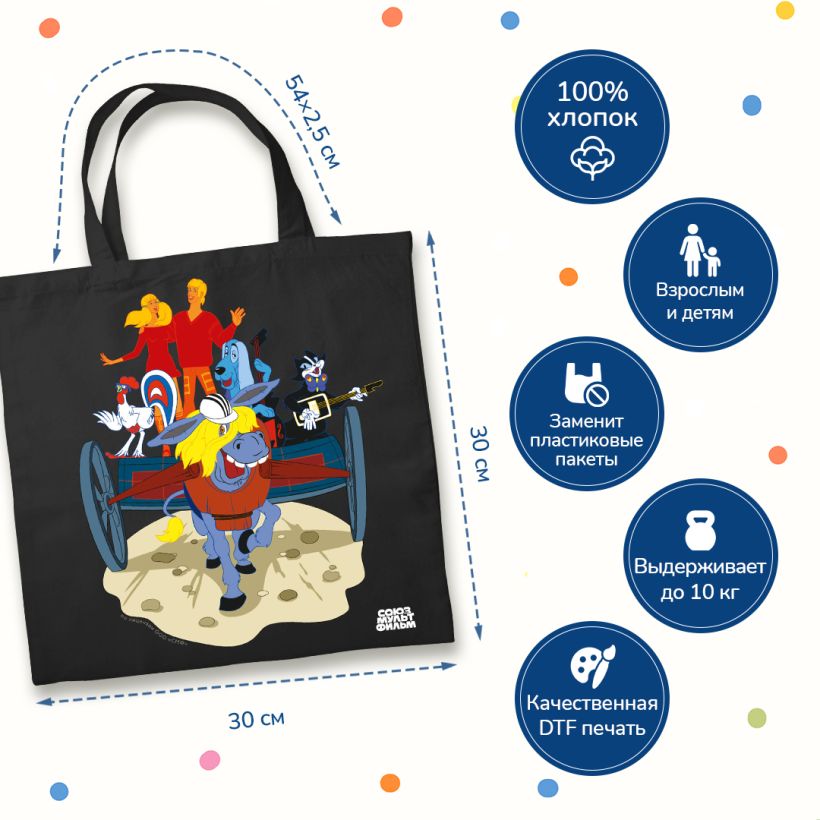 Хороший подарок маме, папе, бабушке, дедушке и внукам. Благодаря универсальному размеру 30х30 см шоппер подойдет как взрослым, так и детям. Длина ручек 54х2,5 см. Шоппер сделан из 100% черного хлопка, ткань приятна на ощупь и отличается износостойкостью. Рисунок нанесен высококачественной DTF печатью, благодаря чему долго останется таким же красочным, как в первый день после покупки.