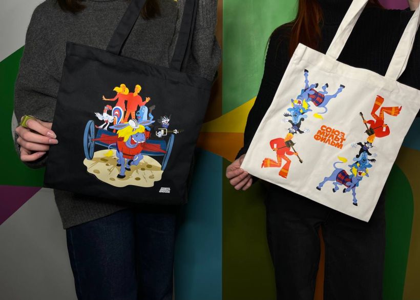 Яркий шоппер по мотивам любимого советского мультфильма детства «Бременские музыканты».